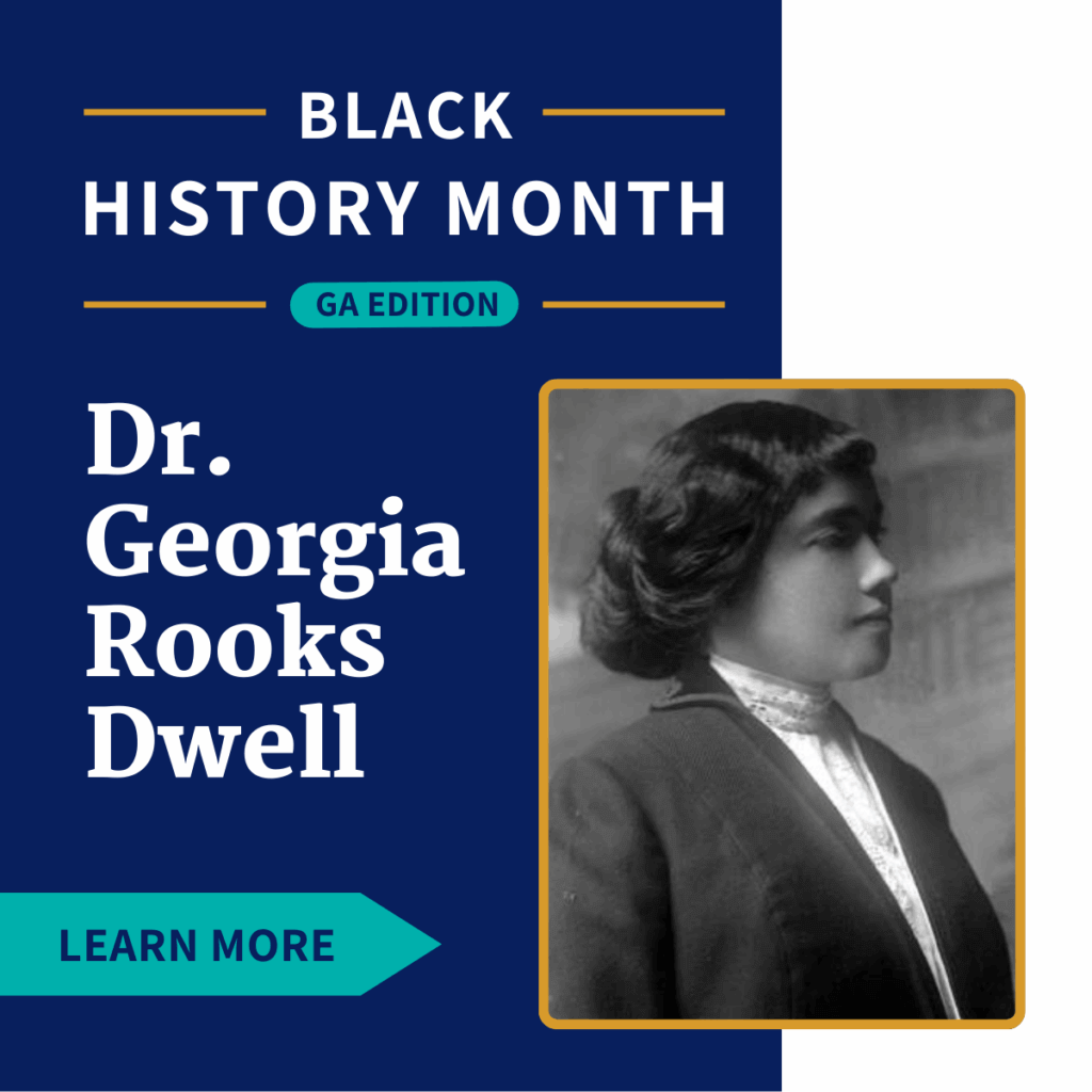 Dr. Georgia Rooks Dwelle was a trailblazing healthcare hero. Born in Albany, Georgia, in 1884, Dr. Dwelle was the first Spelman College graduate to attend medical school. She established the first general hospital, obstetrical hospital, and the first venereal disease clinic for Black people in Georgia.